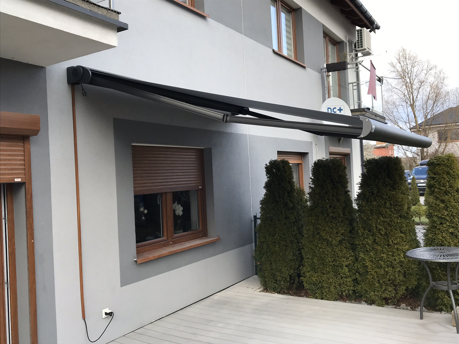 Kompaktowa markiza Top Satin w pełnej kasecie z dużymi możliwościami gabarytowymi tworzy idealną osłonę przeciwsłoneczną. Markiza o doskonałym owalnym kształcie mocowana wyłącznie na dwóch skrajnych uchwytach. W standardzie do wyboru 6 kolorów konstrukcji, szeroka paleta tkanin akrylowych oraz możliwość wyposażenia markizy w silnik przewodowy lub radiowy na pilota. Poniższe realizacje pokazują, że każda markiza wykonana jest pod indywidualne wymagania klienta.