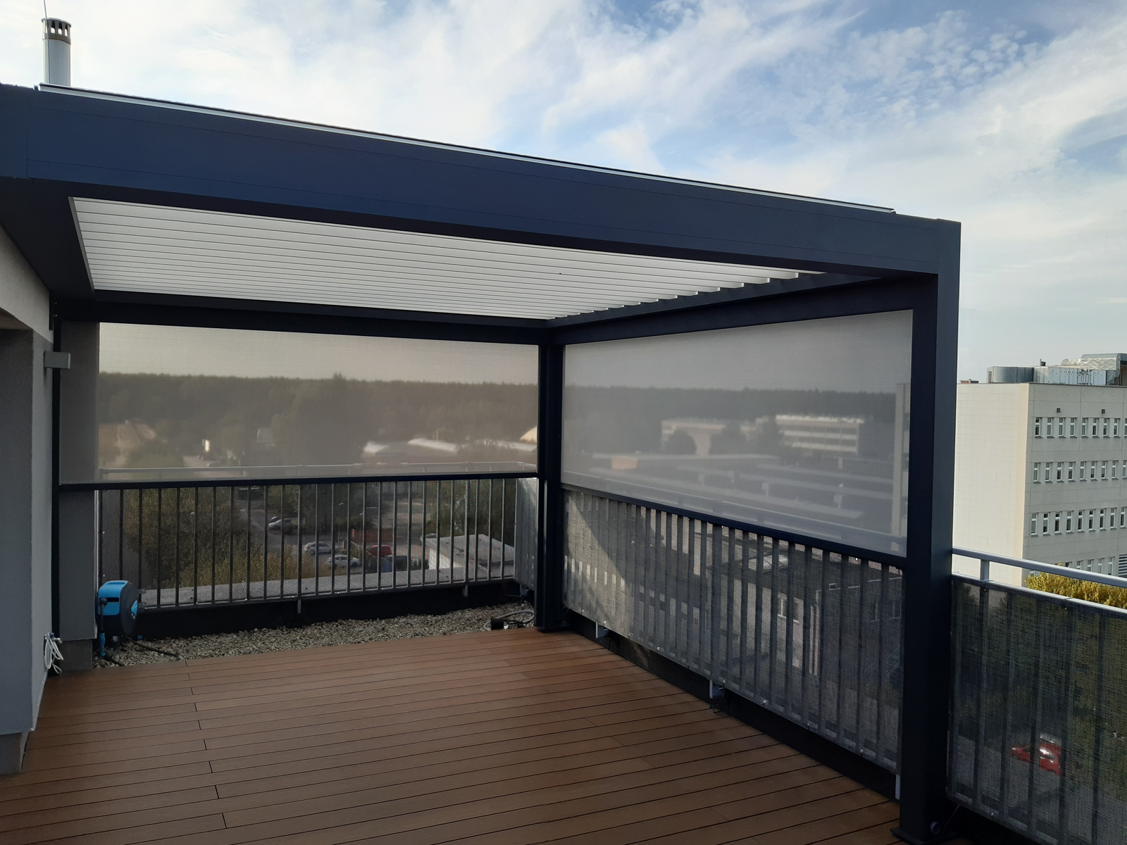 Refleksol screen w systemie zip jest przesłoną boczną, która naszym zdaniem jest wybierana wśród klientów najczęściej. Rolety screenowe są najbardziej uniwersalną opcją zabudowy pergoli i nie tylko dzięki szerokiemu zastosowaniu. Screeny skutecznie chronią przed nadmiernym nagrzewaniem się pergoli, odseparowują wnętrze pergoli od otoczenia a także w pewnym stopniu tworzą osłonę przed zacinającymi opadami deszczu i nadmiernym bocznym wiatrem.