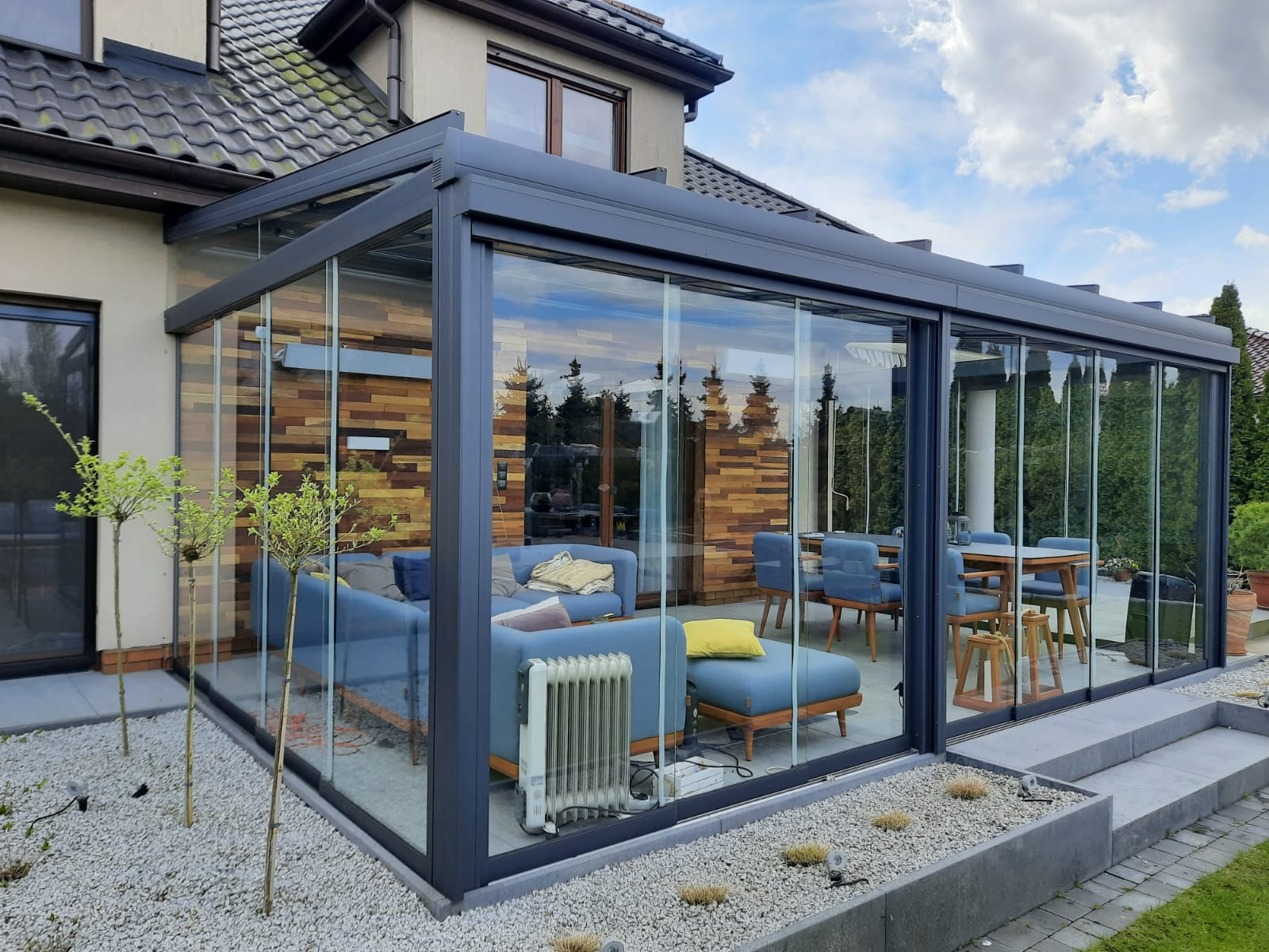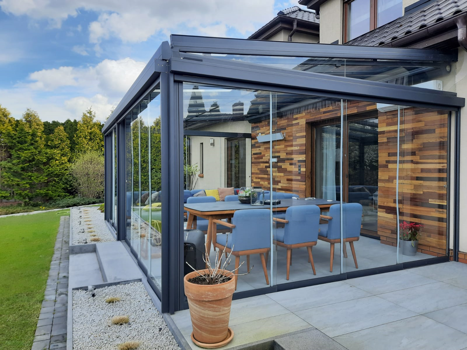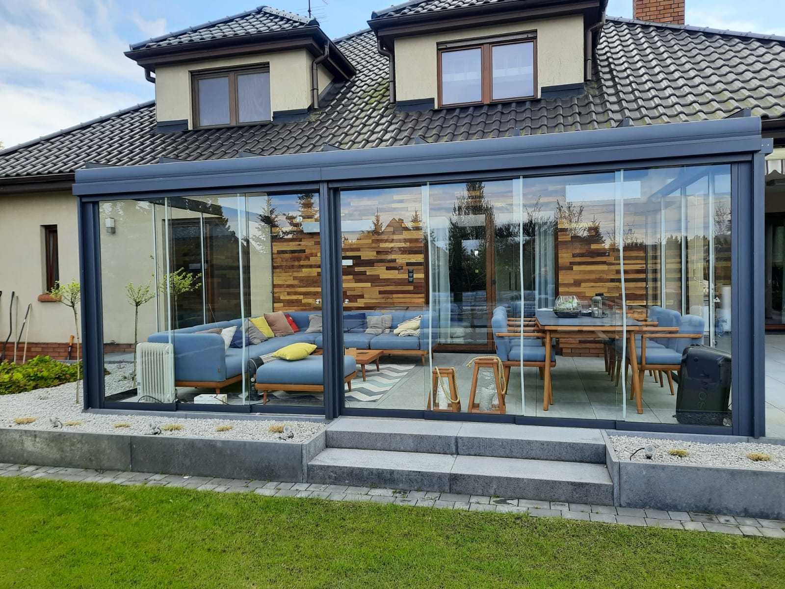 Reasumując, nasz klient otrzymał dodatkowe pomieszczenie, które zapewnia komfort niezależnie od warunków atmosferycznych. Przy zastosowaniu promienników ciepła oraz innej formy ogrzewania możemy korzystać z pergoli nawet cały rok.