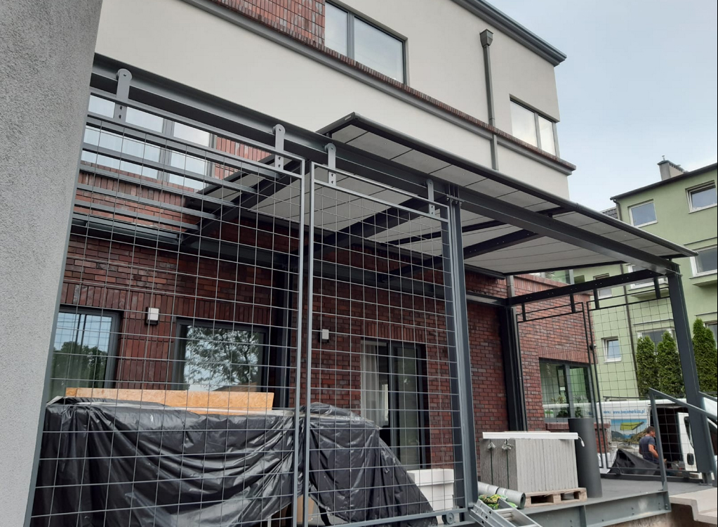- Montaż: nad konstrukcją istniejącego zadaszenia/pergoli