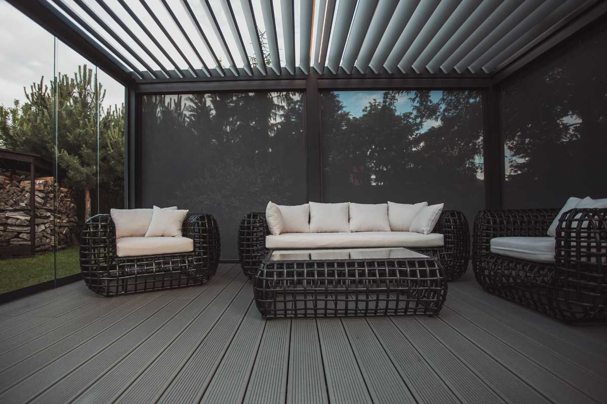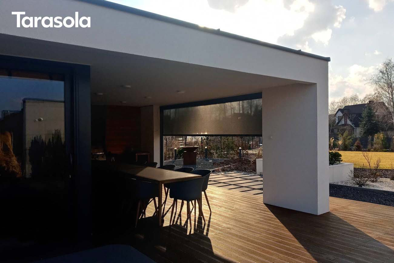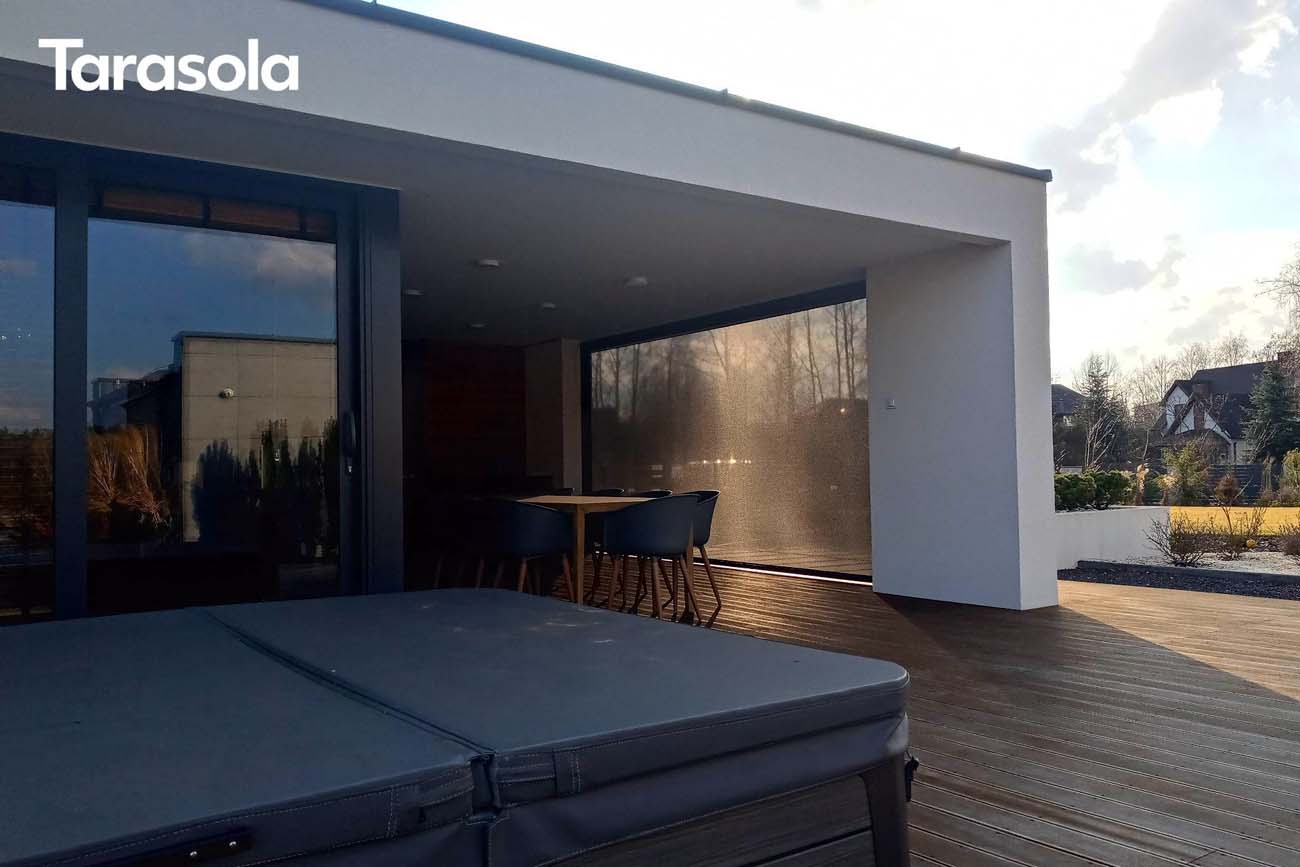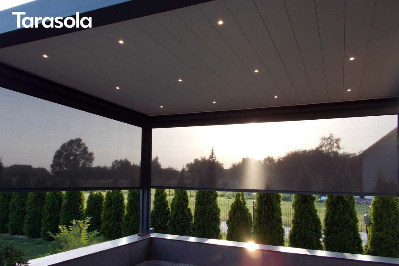 Przezierny materiał, z którego wykonane są rolety, ma podwójną funkcję. Od wewnątrz chroni przed niekorzystnymi warunkami atmosferycznymi oraz przed pyłem czy niepożądanymi insektami. Z kolei z zewnątrz stanowi barierę dla wścibskiego wzroku sąsiadów zapewniając tym samym użytkownikom tarasoli kameralny klimat. Rolety sterowane są przewodowo lub radiowo za pomocą pilota.