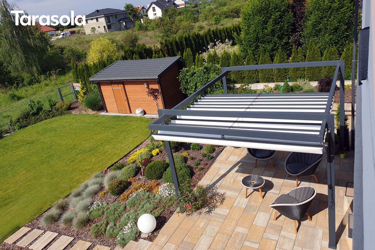 Manualne sterowanie pozwala regulować jego ustawienie w zależności od potrzeb. Tarasola Wave jest doskonałą alternatywą dla tradycyjnych, drewnianych pergoli, które czasy świetności mają już za sobą.