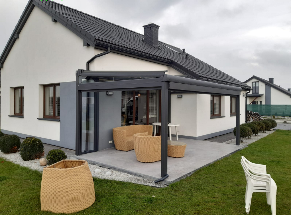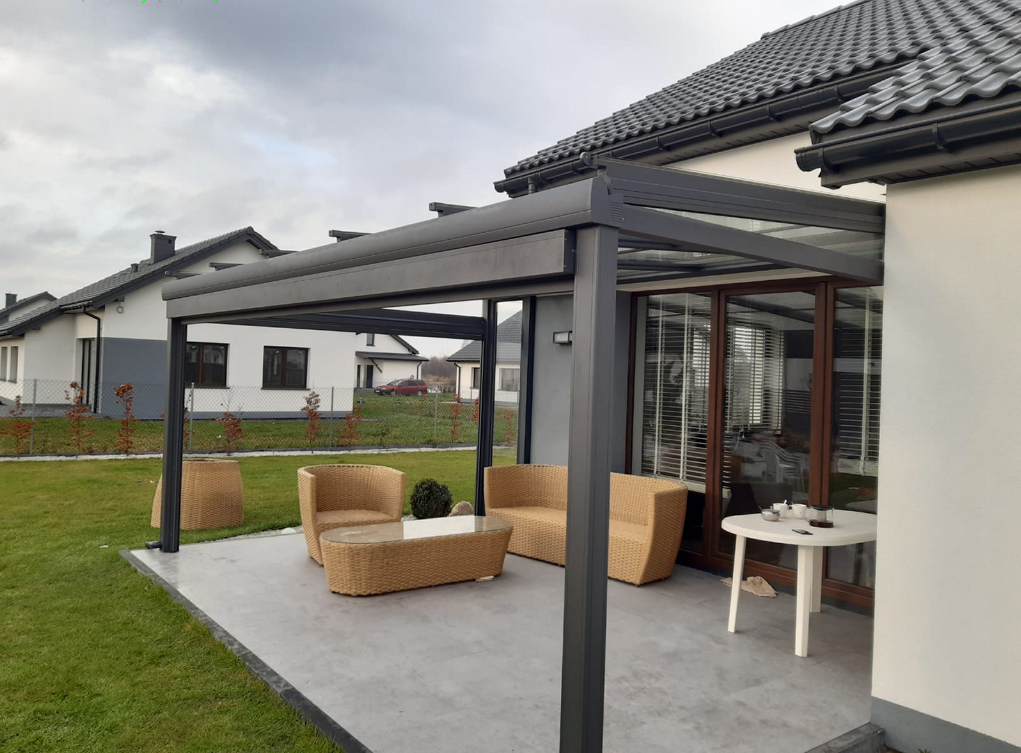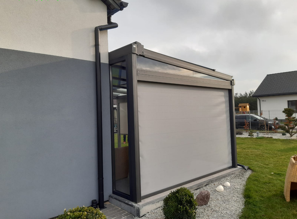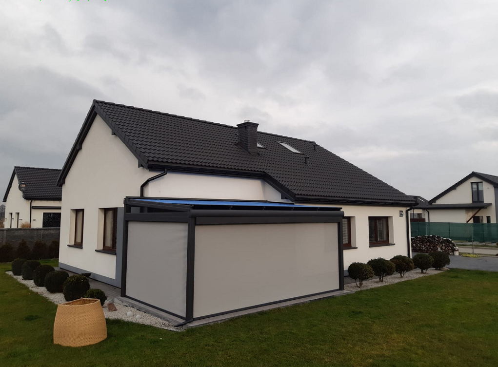 - możliwość zastosowania bocznych przesłon w postaci przesuwnych szyb ramowych lub bezramowych, screenów, sunbreaker-ów lub przesuwnych paneli aluminiowych lub drewnianych