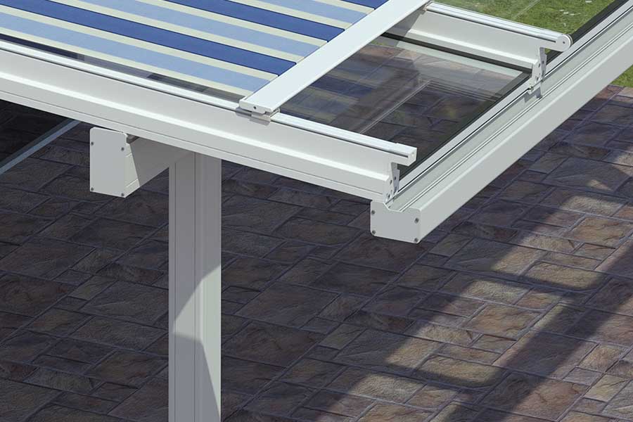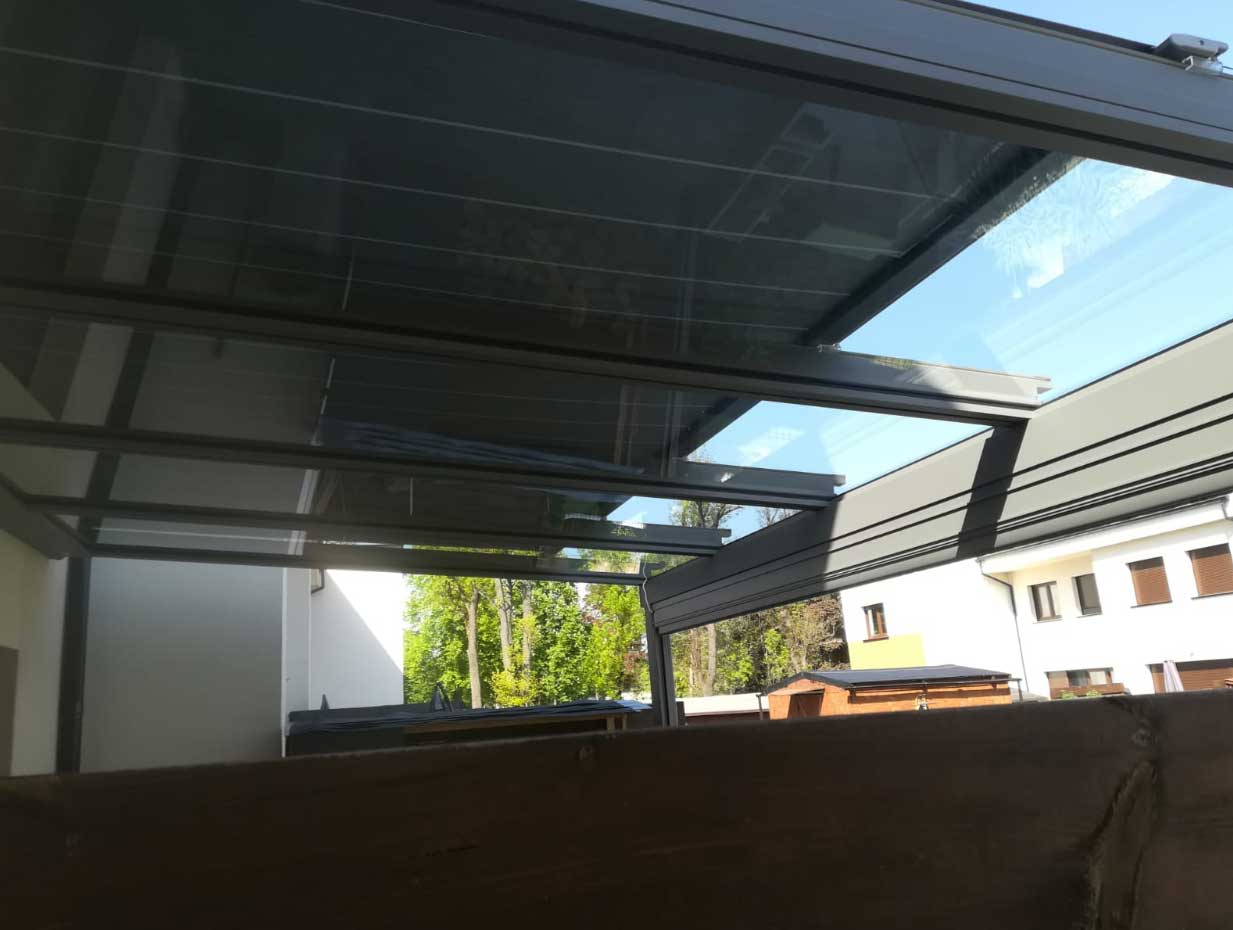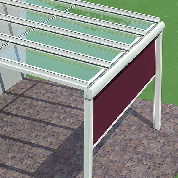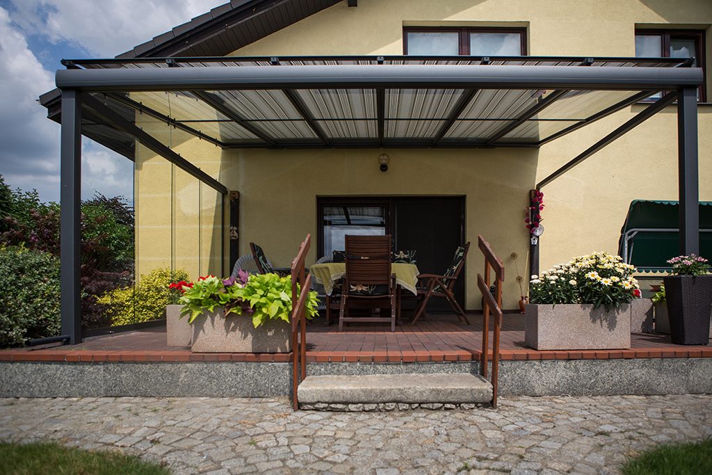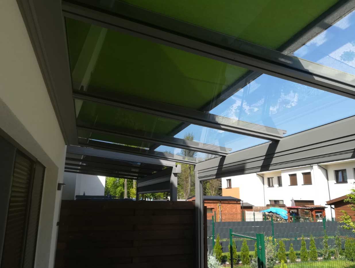 - możliwość zastosowania bocznych przesłon w postaci przesuwnych szyb ramowych lub bezramowych, screenów, sunbreaker-ów lub przesuwnych paneli aluminiowych lub drewnianych