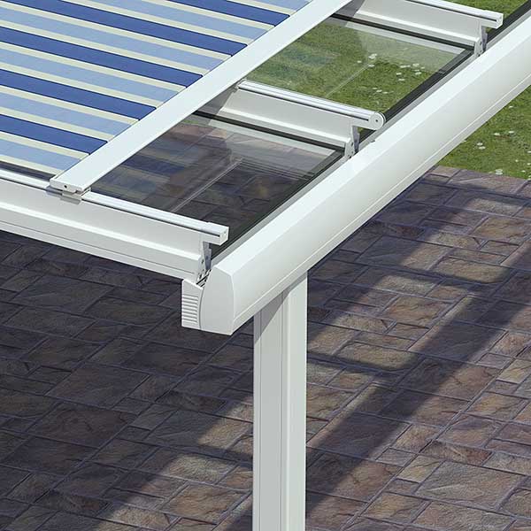 Jedyna w naszej ofercie pergola z dachem szklanym oraz dodatkowo zintegrowanym pokryciem markizowym. Murano Integrale to zarazem najwyższy jakościowo model zadaszenia szklanego. Profile wykonane są z wysokiej jakości aluminium, dach stanowią szyby bezpieczne klejone 10, 12 lub 16mm grubości. Konstrukcja może być polakierowana w standardzie na 23 kolory, w tym 6 kolorów strukturalnych. Dach stanowi skuteczną, całoroczną ochronę przed słońcem, deszczem i śniegiem.